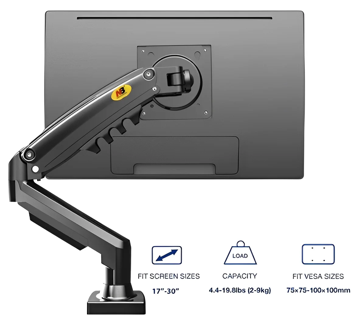 SUPORTE PARA MONITOR ARTICULADO 17" A 30" DE MESA COM PISTÃO A GÁS F80 NB